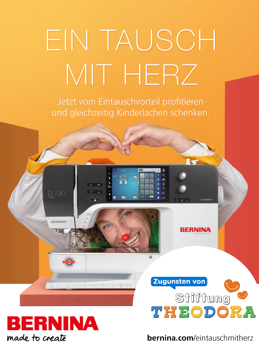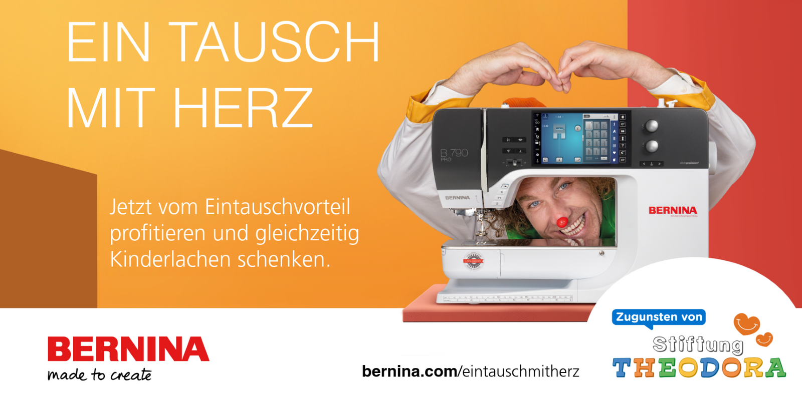 Bei Kauf BERNINA Nähmaschine der 5er, 7er, 9er Serie und L8er Overlock Serie in unseren Läden in Baden, gibts bis Fr. 300.00 zusätzlich Eintauschwert zum regulären Eintauschwert. Wenn keine Maschine zum Eintauschen vorhanden ist, dann gibts Fr. 100.00 Rabatt.