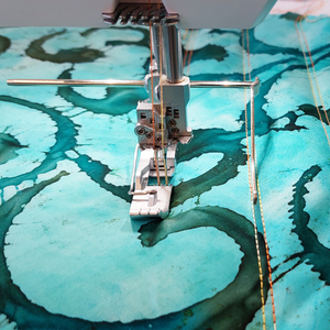 Das Kantenlineal im Schaft rechts wird für Cover- und Kettenstich verwendet, um parallele Nähte zu Linien, vorhandenen Nähten oder der Stoffkante auf der rechten Seite des Nähfusses zu erzeugen.1)