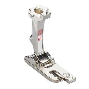 Der Zickzacksäumer Nr. 61 ist ein praktischer Nähfuss, der mehrere Arbeitsschritte in einem Nähvorgang ermöglicht. Nutzen Sie diesen Fuss besonders zum Verarbeiten von feinen Stoffen.