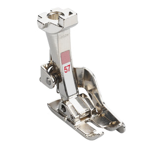 Der Patchworkfuss mit Führung Nr. 57 unterscheidet sich durch seine seitlich montierte Führungsschiene vom Patchworkfuss Nr.37.