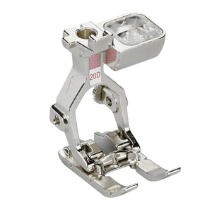 Der offene Stickfuss Nr. 20D ist ideal für Applikationen und Stickarbeiten. Die offene Form gewährleistet eine perfekte Sicht auf das Nähprojekt.