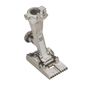 Der Biesenfuss Nr. 33 mit 9 Rillen eignet sich für besonders leichte Stoffe wie Batist. Er kommt beim Biesennähen mit einer Zwillingsnadel zum Einsatz.