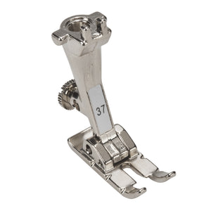 Der Patchworkfuss Nr. 37 ist hervorragend für Patchworkarbeiten mit 3 mm und 6 mm Nahtzugabe geeignet. Die drei seitlich angebrachten Kerben bieten eine genaue Orientierung für das Einsetzen winkeliger Patchworkteile.