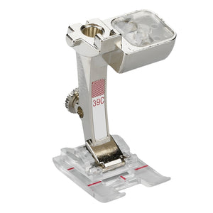 Der Stickfuss mit transparenter Sohle Nr. 39C ist der Nachfolger des sich schon bewährten Stickfusses Nr. 6 und gewährt durch seine transparente Sohle immer einen freien Blick auf den Stickbereich.