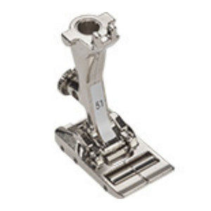 Der Rollenfuss # 51 ist ein Fachmann für das Nähen auf schwierigen Materialien. Durch seine drei Rollen an der Fussunterseite gleitet er mühelos über haftende Textilien wie Leder und Vinyl sowie Stoffe mit starker Oberflächenstruktur. Der Stofftransport wird nicht behindert, es entsteht ein sauberes und gleichmässiges Stichbild. Dadurch ist der Rollenfuss # 51 ideal für Lederziersteppereien sowie das Anfertigen und Ausbessern von Taschen, Regenmänteln und anderen Kleidungsstücken oder Heimtextilien.