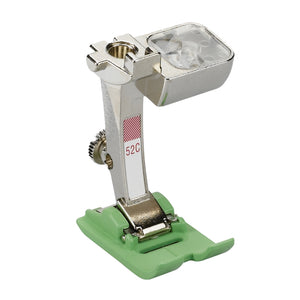 Der Zickzack-Nähfuss mit Gleitsohle Nr. 52C garantiert ein reibungsloses Gleiten über schwer zu bearbeitende Materialien wie Leder, Plastik oder Ähnliches.