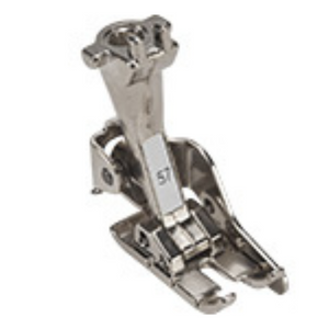 Der Patchworkfuss mit Führung Nr. 57 unterscheidet sich durch seine seitlich montierte Führungsschiene vom Patchworkfuss Nr.37.