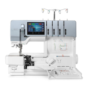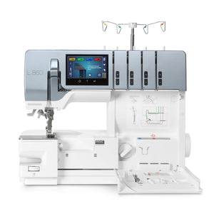 4, 3, oder 2 fädige Overlock, tolle Nähperformance. Die beiden Greiferfäden werden mit Luftzug eingefädelt. Kommt mit Freiarm. Bedienung über Touchdisplay (genial!!). Mehr Raum rechts der Nadel wie die L4er Serie. Nadel- Messerstopp oben. Dadurch kann bei Nähbeginn mehr Material unter Nähfuss gelegt werden. Inkl. Knielifter und Anschiebetisch. Optional diverse Spezialnähfüsse einzeln verfügbar.