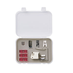 Bei der 38 Yaya Han Edition ist ein Nähfuss-Set soewie ein Etui mit 2 Scheren und ein Auftrenner inklusive.