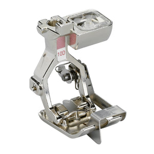 Der Schmalkantfuss Nr. 10D ist ein praktischer Helfer, um fertige Kanten gleichmässig und gerade zu nähen. Er eignet sich hervorragend zum Annähen von Spitzen und Bändern.