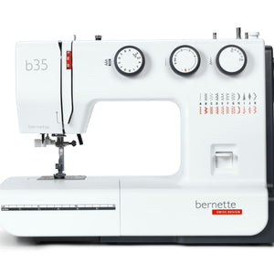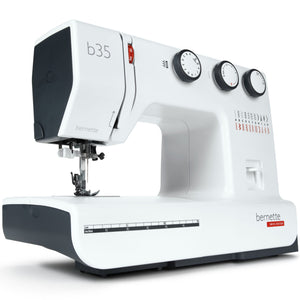 Die bernette 35 ist ein mechanisches Modell ohne Computersteuerung. Das Stichpaket umfasst mit Nutz- und Dekostichen insgesamt 23 Stiche bei einer maximalen Stichbreite von 5 mm. Alle Einstellungen wie Fadenspannung, Stichbreite und -länge, aber auch das Anwählen eines Stiches können mit den drei vorderen Drehknöpfen vorgenommen werden.