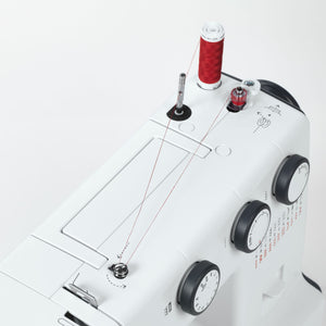 Mechanische Nähmaschine mit Freiarm, Bedienung mit 3 Drehknöpfen. Der zusätzliche Drehknopf dient zur individuellen Einstellung der Stichbreite für alle Stiche. Die bernette 35 hat mehr Stiche als bernette 33. Bedienung der Spulen von vorne her (CB System). Stichbreite bis max. 5mm.