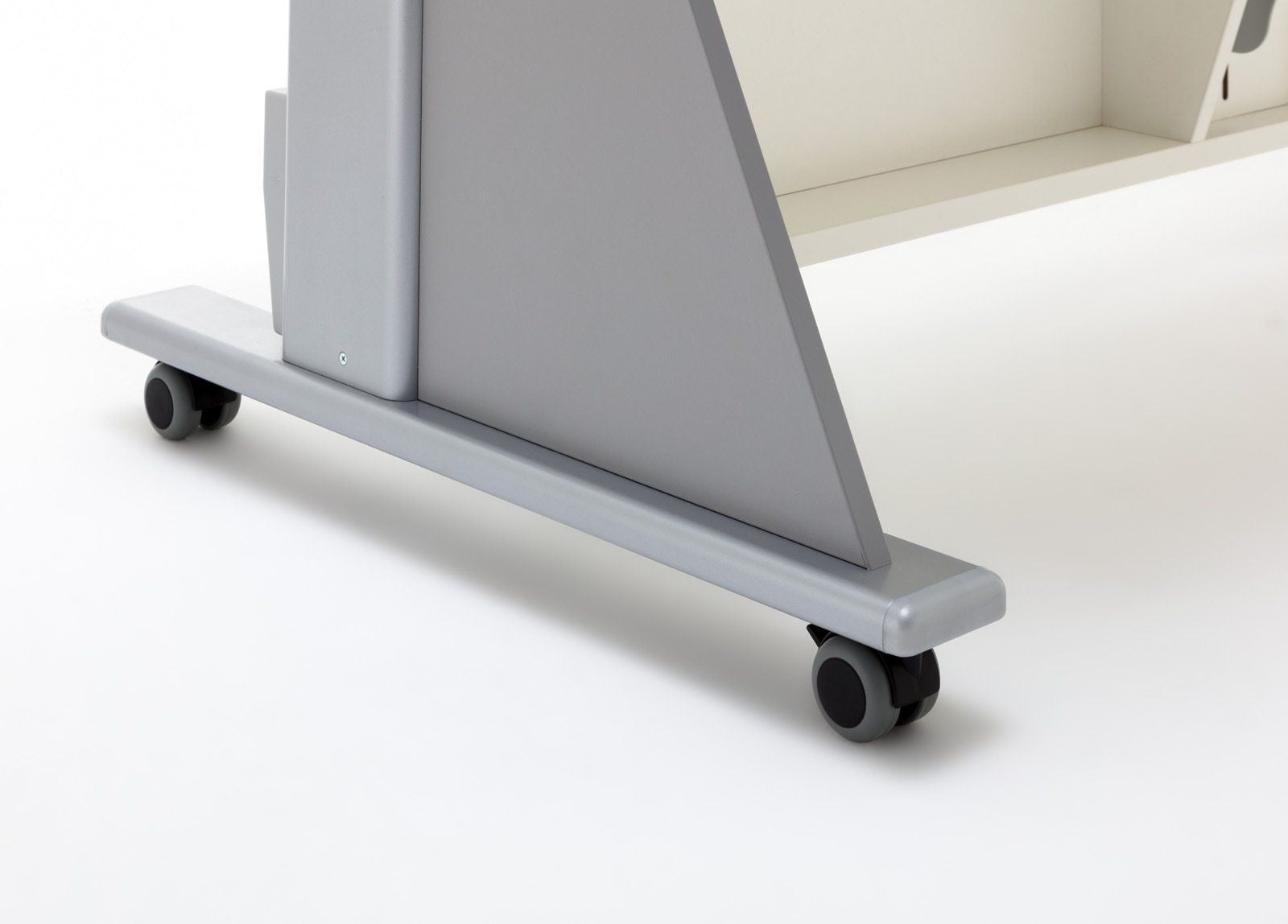 Alle vier Rollen haben eine bewährte Spezialgummierung für empfindliche Böden und sind mit Feststeller ausgestattet.
