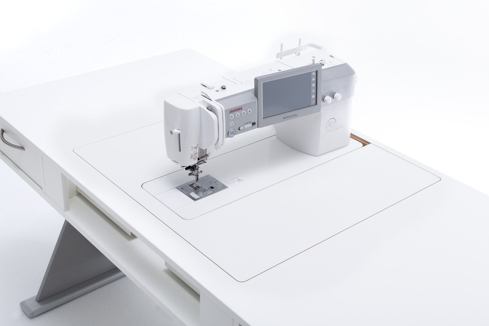 Der weltweit erste ergonomisch höhenverstellbare Quilttisch für LONGARM-Quiltmaschinen. Dieser passt sich in jeglicher Arbeitshaltung jeder Körpergröße an. Egal ob Sie im Sitzen oder Stehen arbeiten. Das Hobby macht wieder Spaß, denn Rücken-, und Nackenverspannung gehören nun der Vergangenheit an. Die Flachbetthöhe Ihrer LONGARM-Quiltmaschine, damit Sie Ihren Quilt eben über die Nähfläche zu schieben zu können, kann man exakt durch die 4 Spezialschrauben von der Unterseite einstellen. Die passende Freiarmeinlage für das Flachbettquilten bestellen Sie einfach mit. Das Möbel besitzt rechts und links noch eine praktische Schublade für Ihre Kleinteile.