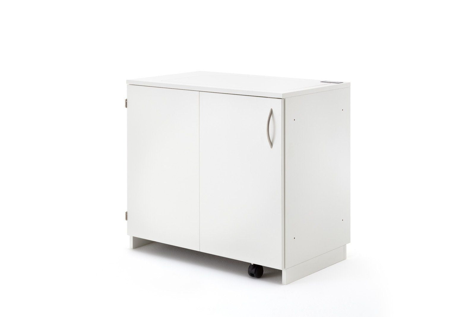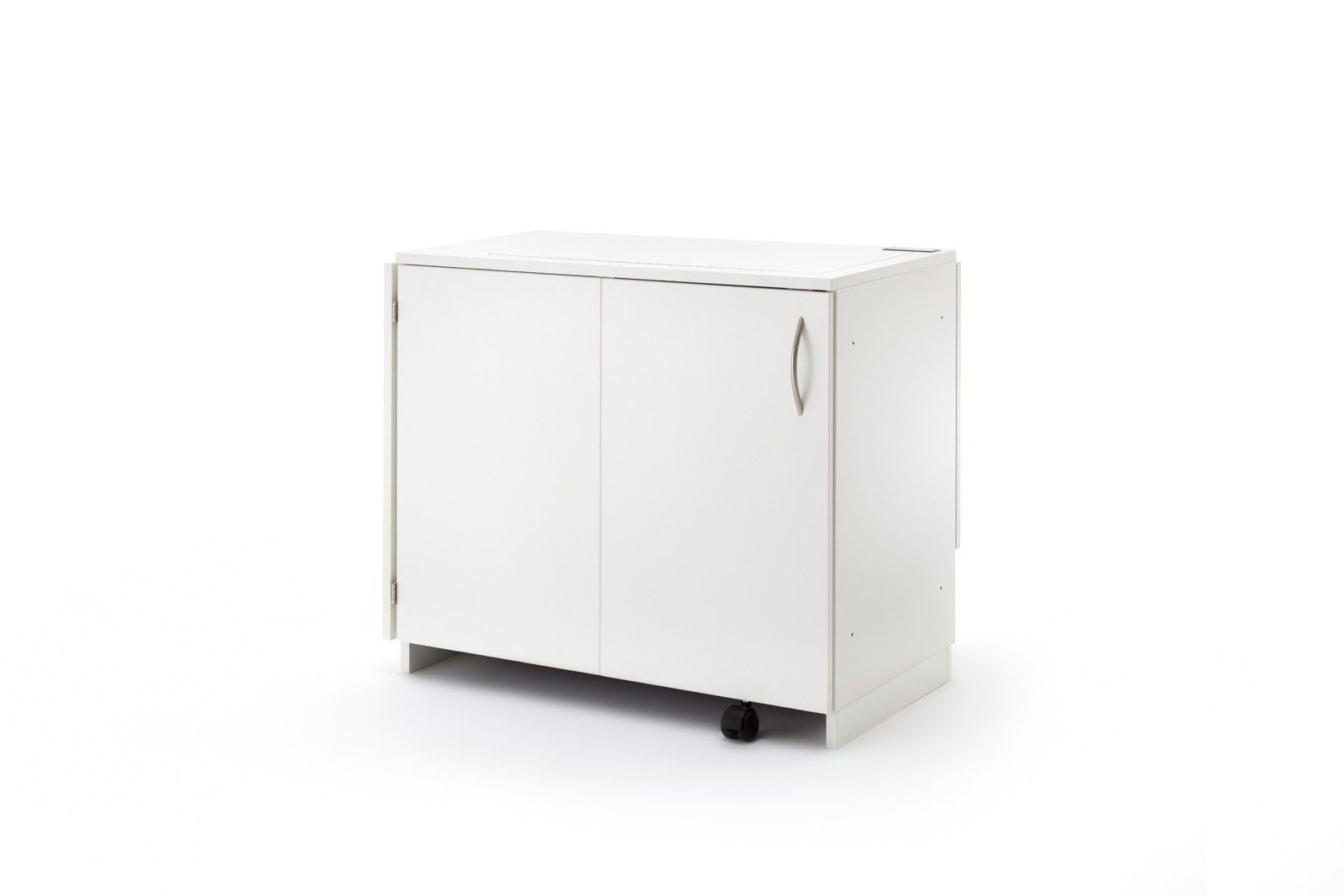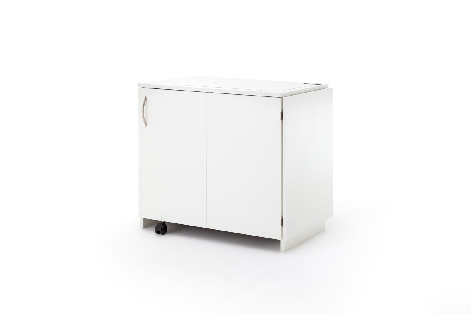 STACK sixdo, das schmale Zubehörmöbel mit Drehtüre welche bis zu 270° flach an Seite umgeschwenkt werden kann, bietet Stauraum für die unterschiedlichsten Kurzwaren für den Start ins Hobby. Er besitzt 6 herausnehmbare Schubladen. Die oberen 3 Schubladen hab einzeln herausnehmbare Unterteilungen, welche bis zu 12 kleine Fächer zulässt. Somit können Sie sich Ihre für Sie passsende Einteilung für Ihr Zubehör selbst gestalten. Die Schubladen haben eine Innenbreite von 275mm und eine Innentiefe von 430mm. Die Bestückungshöhe der obersten Schublade liegt bei 89mm, alle weiteren bei 75mm. Alle Möbel aus der BASE, EXTEND, und STACK Modellreihe können durch die vorgebohrten Metallverbindungsschrauben mit Hülsen miteinander verbunden werden. Sofern das nicht gewünscht ist, liegen Abdeckkappen in passender Farbe bei.In unserer Ausstellung steht der neue, geniale Twin fold, Näh-Quilttisch. Mittels Drehteller kann die Maschine um 90 Grad gedreht werden.