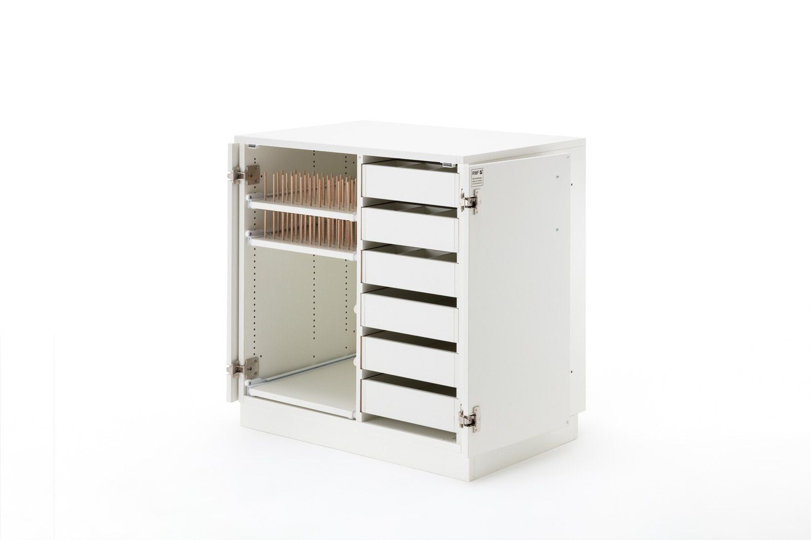 TACK layer, das breite Zubehörmöbel, welches nach links und rechts mit weiteren Möbeln erweiterbar ist, bietet genügend Stauraum für den Start ins Hobby. Dieses Möbel mit den beiden auf den Sicherheitsfachbodenträgern flexibel einsetzbaren Fachböden wird auch gerne im STACK-Segment als Schrankwand aufeinandergestapelt. Alle Möbel aus der BASE, EXTEND, und STACK Modellreihe können durch die vorgebohrten Metallverbindungsschrauben mit Hülsen miteinander verbunden werden. Sofern das nicht gewünscht ist, liegen Abdeckkappen in passender Farbe bei.