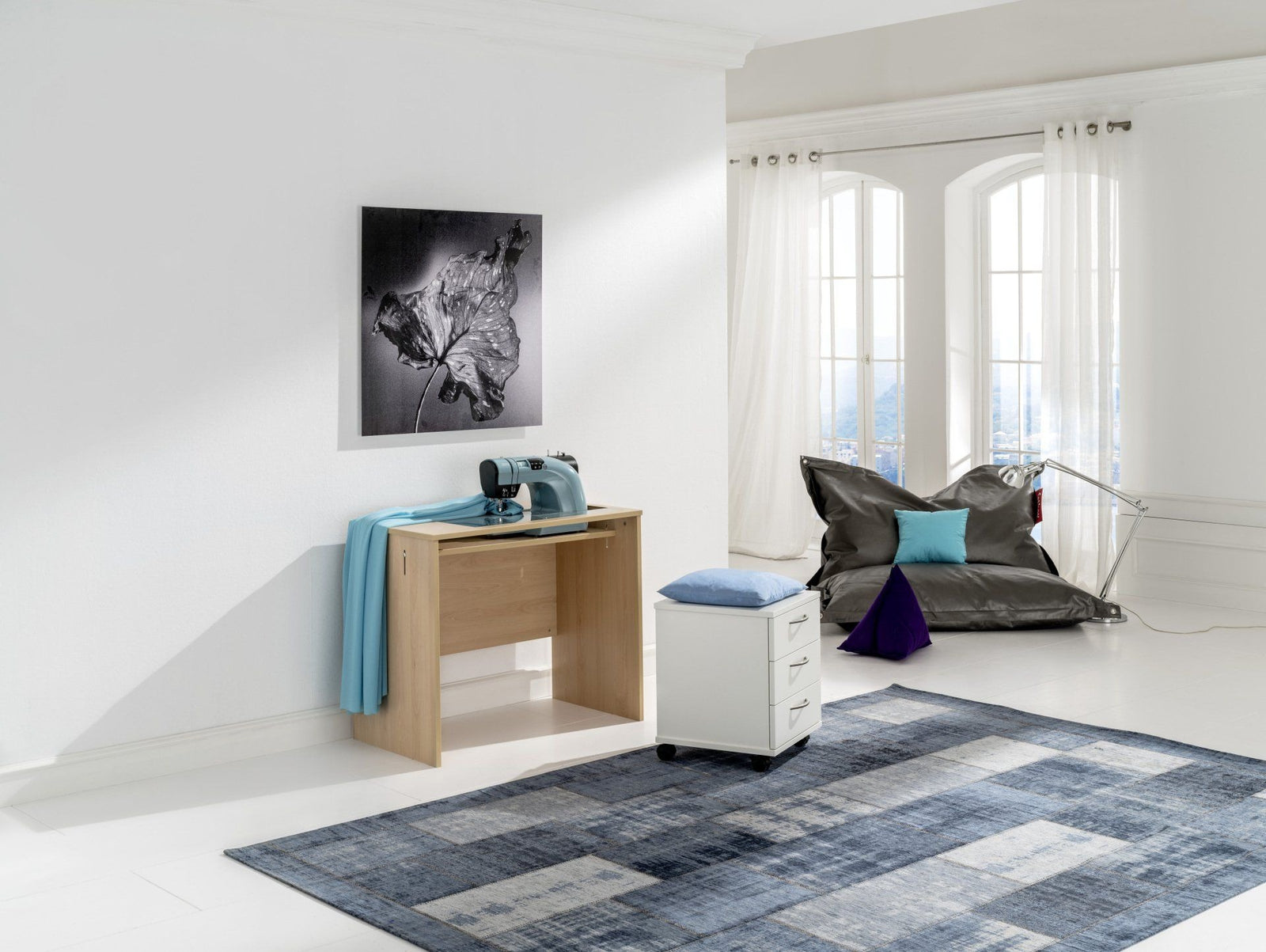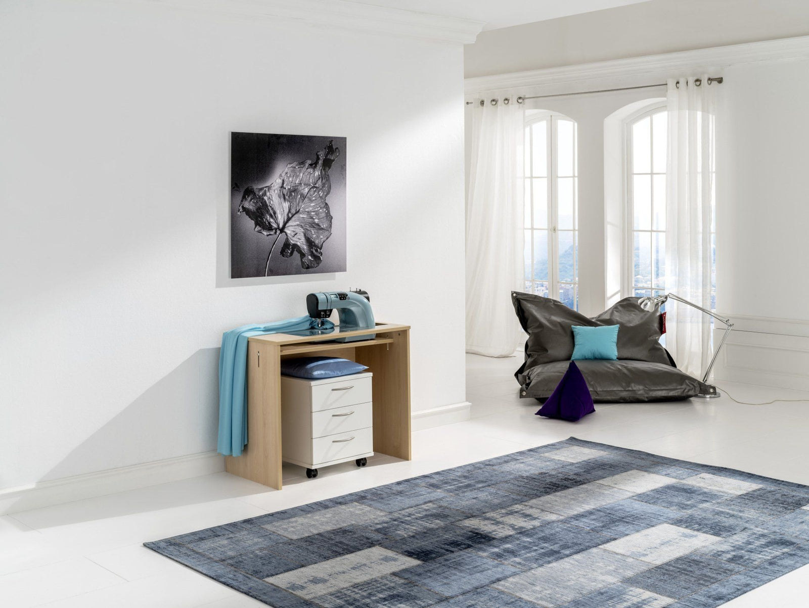 Der Nähhocker STOOL hat gleich 2 Funktionen. Er ist ein bequemer Sitzhocker und lädt ein, Ihr erstes Nähprodukt ein tolles Nähkissen zu gestallten. Meistens wird dieser Sitzhocker zusammen mit unserm Einsteiger-Nähmöbel START bestellt. Seine drei geräumigen Schubladen bieten genügend Platz für Ihr Nähzubehör.