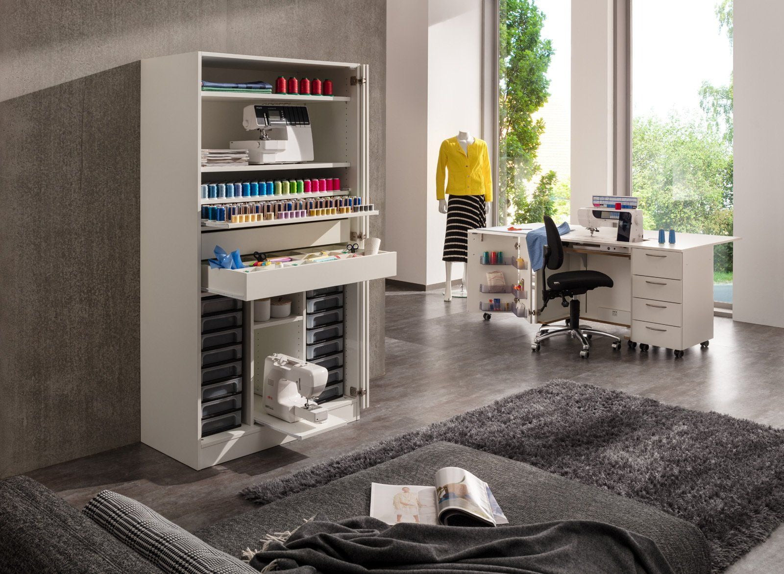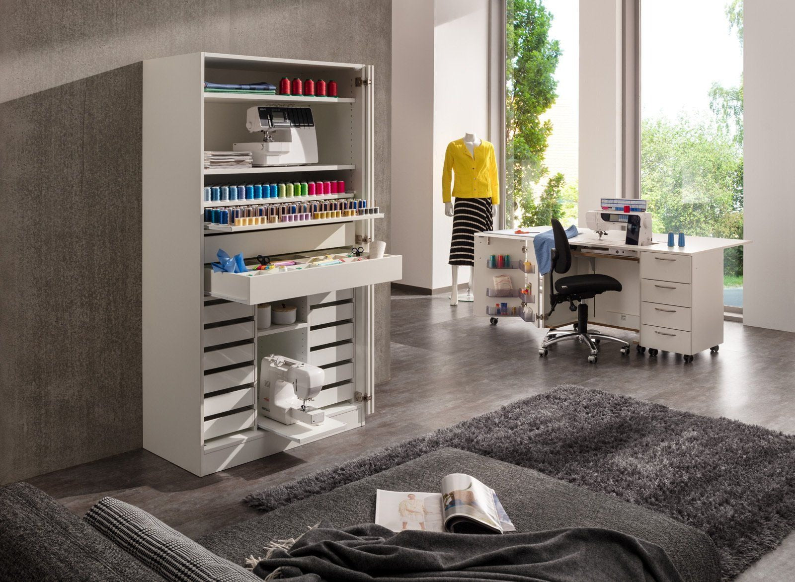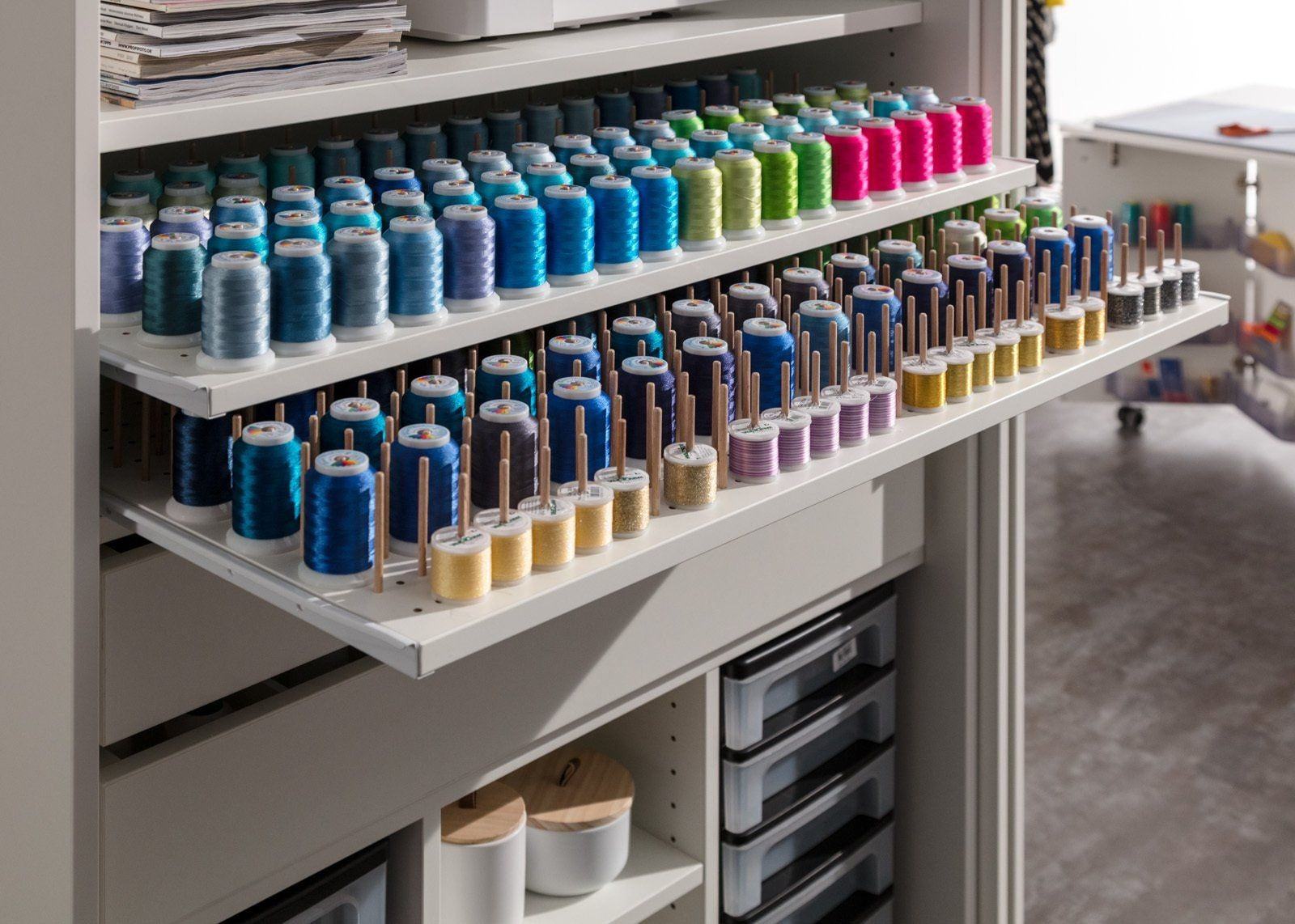 Ein Schrank zum Verlieben. Wir haben ein neues Ordnungssystem für jede Hobby-Näherin geschaffen. Schluss mit dem Chaos, denn beim STORE Lux hat jeder wieder einen Überblick über das komplette Nähmaterial. Wahlweise mit linker oder rechter 270° schwenkbarer Faltdrehtüre, oder mit 2 Drehtüren ebenfalls mit sehr stabilen 270° Objektbändern lieferbar.