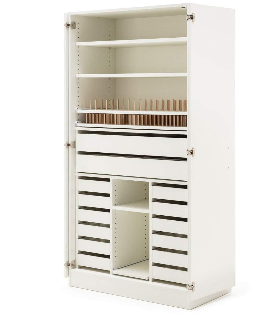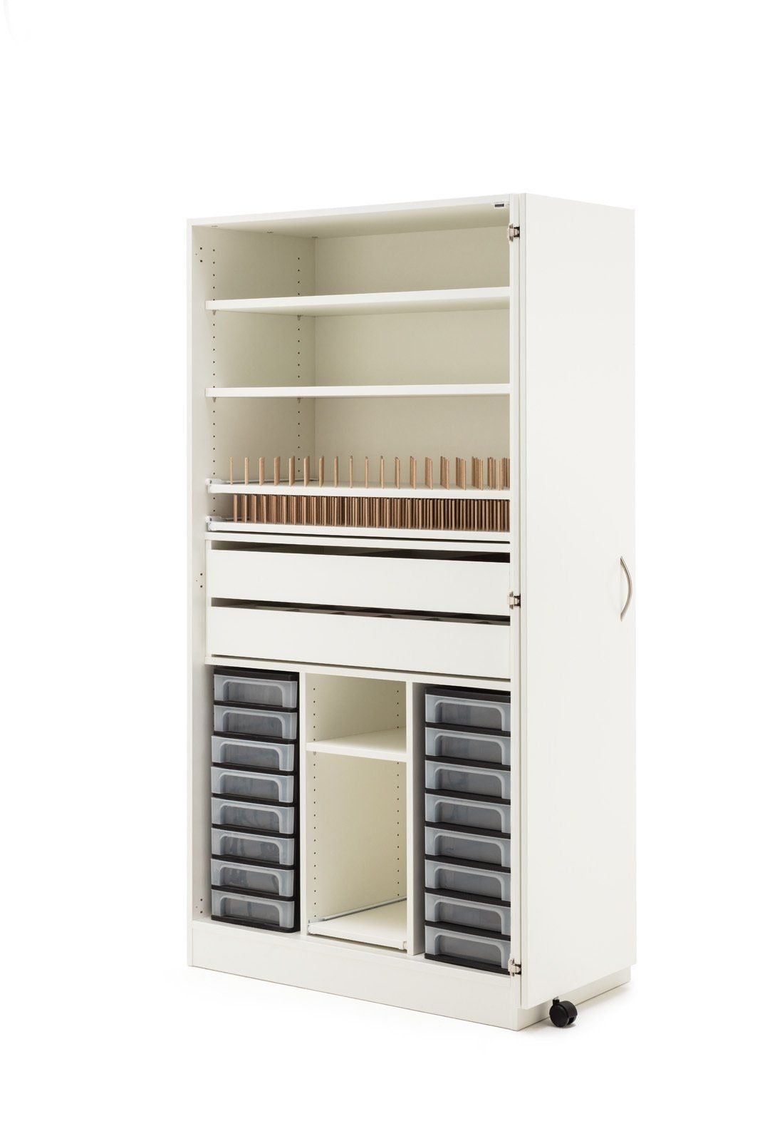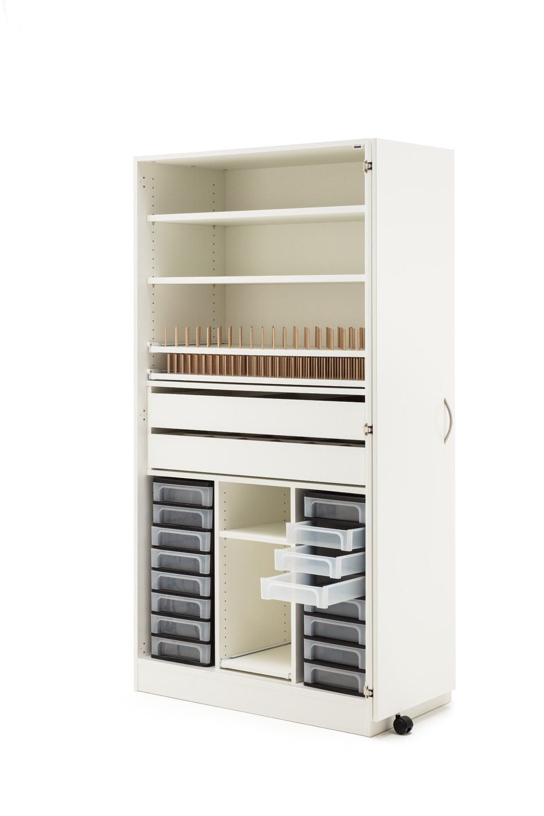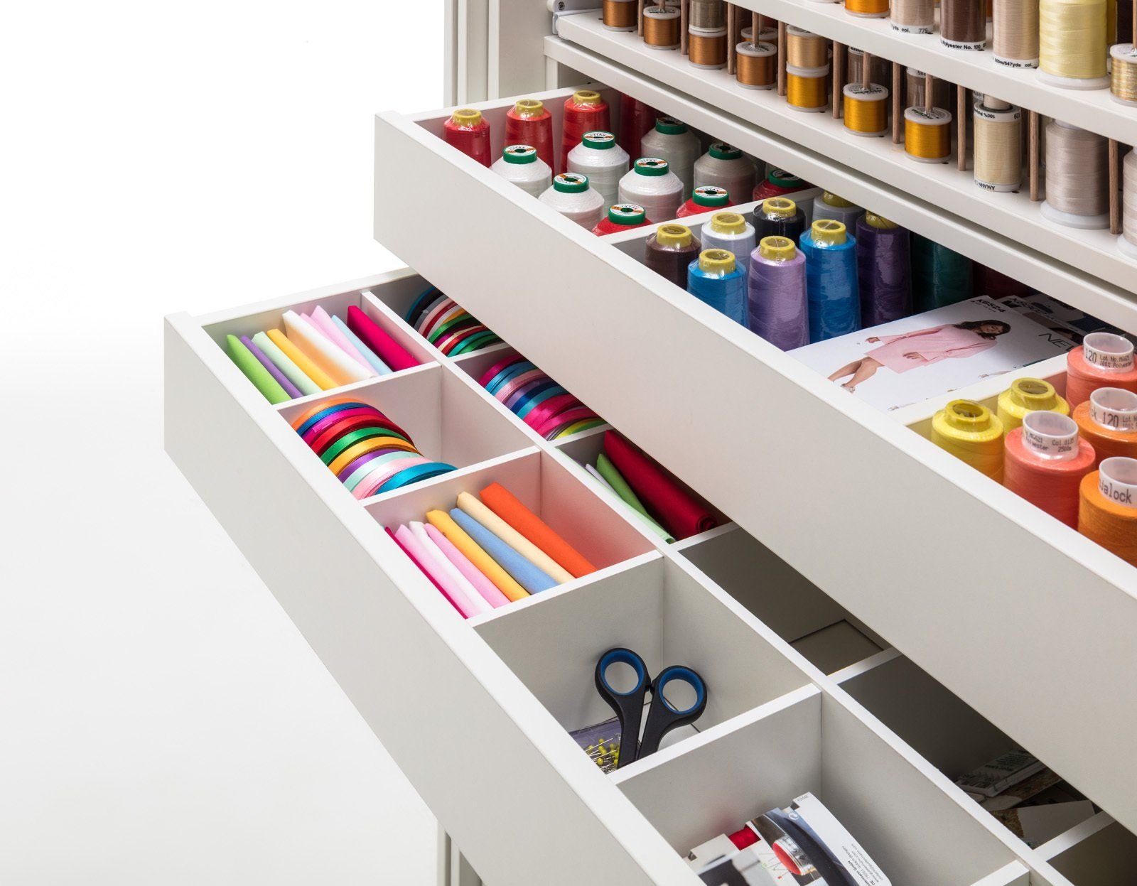 Ein Schrank zum Verlieben. Wir haben ein neues Ordnungssystem für jede Hobby-Näherin geschaffen. Schluss mit dem Chaos, denn beim STORE Lux hat jeder wieder einen Überblick über das komplette Nähmaterial. Wahlweise mit linker oder rechter 270° schwenkbarer Faltdrehtüre, oder mit 2 Drehtüren ebenfalls mit sehr stabilen 270° Objektbändern lieferbar.