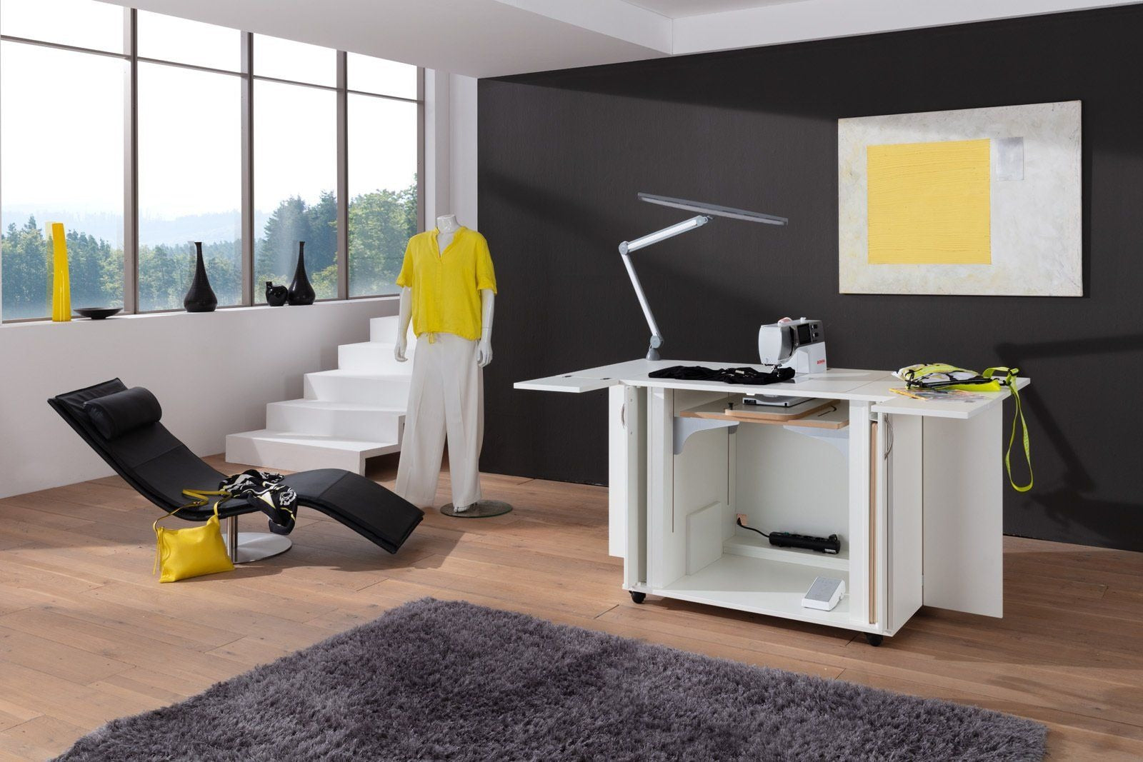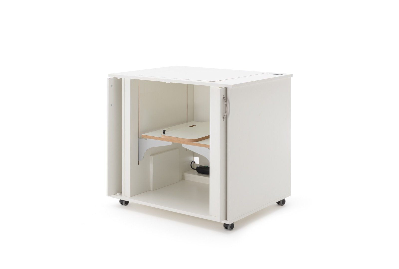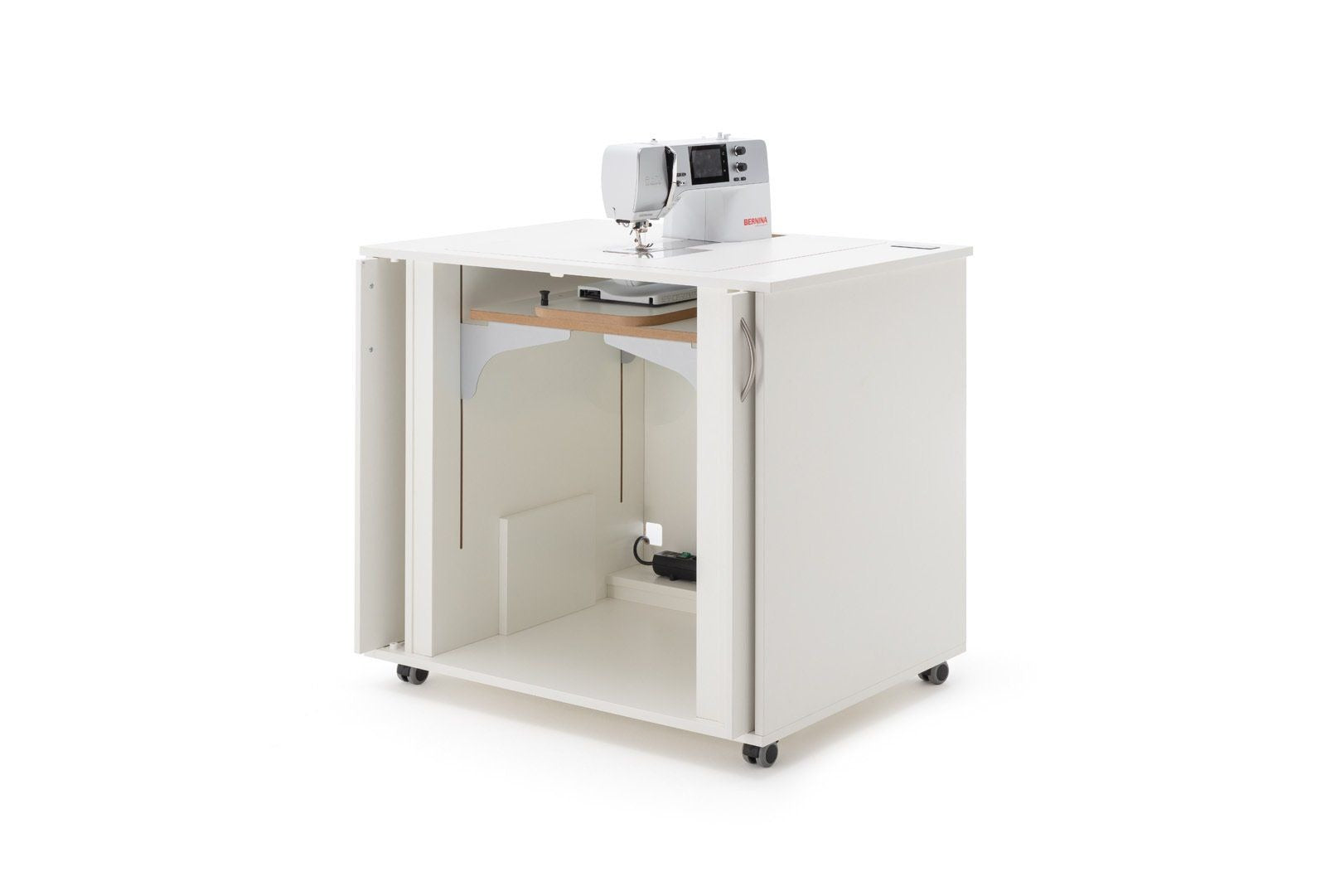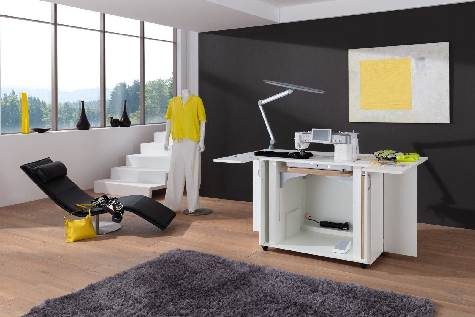 Unsere Revolution zum Nähen und Quilten in 90° auf einem Level, mit dem von uns entwickelten Schiebe-, und Drehmechanismus. Die Maschine kann auf dem Liftbrett um 90 Grad zwangsgeführt verdreht werden kann. Somit ist ein Quilten wie mit einer Longarm-Quiltmaschine möglich. Die für Ihre Maschine passende Freiarmeinlage ob quer oder in 90° gedreht bieten wir für alle Haushalt-Nähmaschinen an. Egal ob Sie Freiarm Nähen, Sticken, oder Ihre Maschine komplett versenken wollen, die beiden gekoppelten elektronisch gesteuerte RMF – easy-Softtech Lift bewegen jedes Maschinengewicht mühelos und bieten absolute Stabilität in jeder Lage. Das in der Platte eingelassene i-Touch Bedienfeld mit Lock-, zwei Momoryfunktionen , und einer Auf und Ab Funktion runden die Bedienung ab. Durch den neuen großen RMF – Simply-7 Ausschnitt ist der Nähtisch kompatibel für alle Haushalt-Nämaschinen. Die beiden Einschiebetüren verschwinden fast unsichtbar in das Innere des Möbels. Mit unserer Stuhlserie CHAIR one und CHAIR two sitzen Sie auch an diesem Möbel immer in der ergonomisch perfekten Höhe und Haltung.