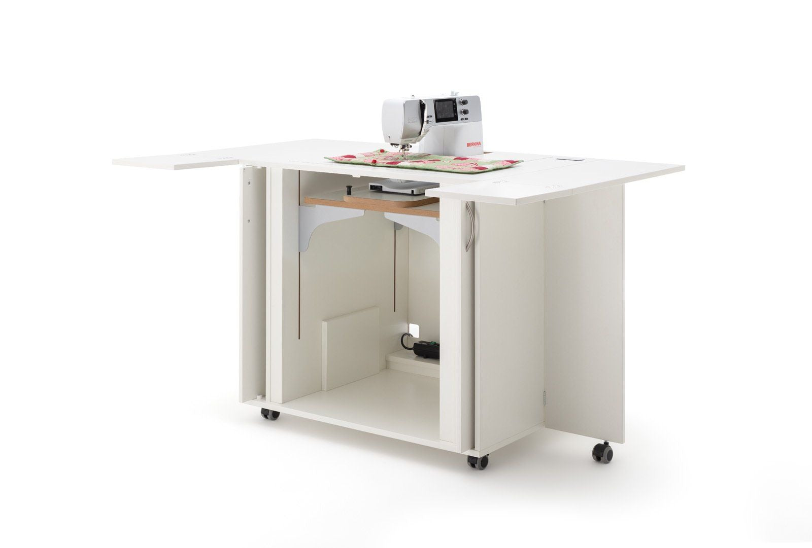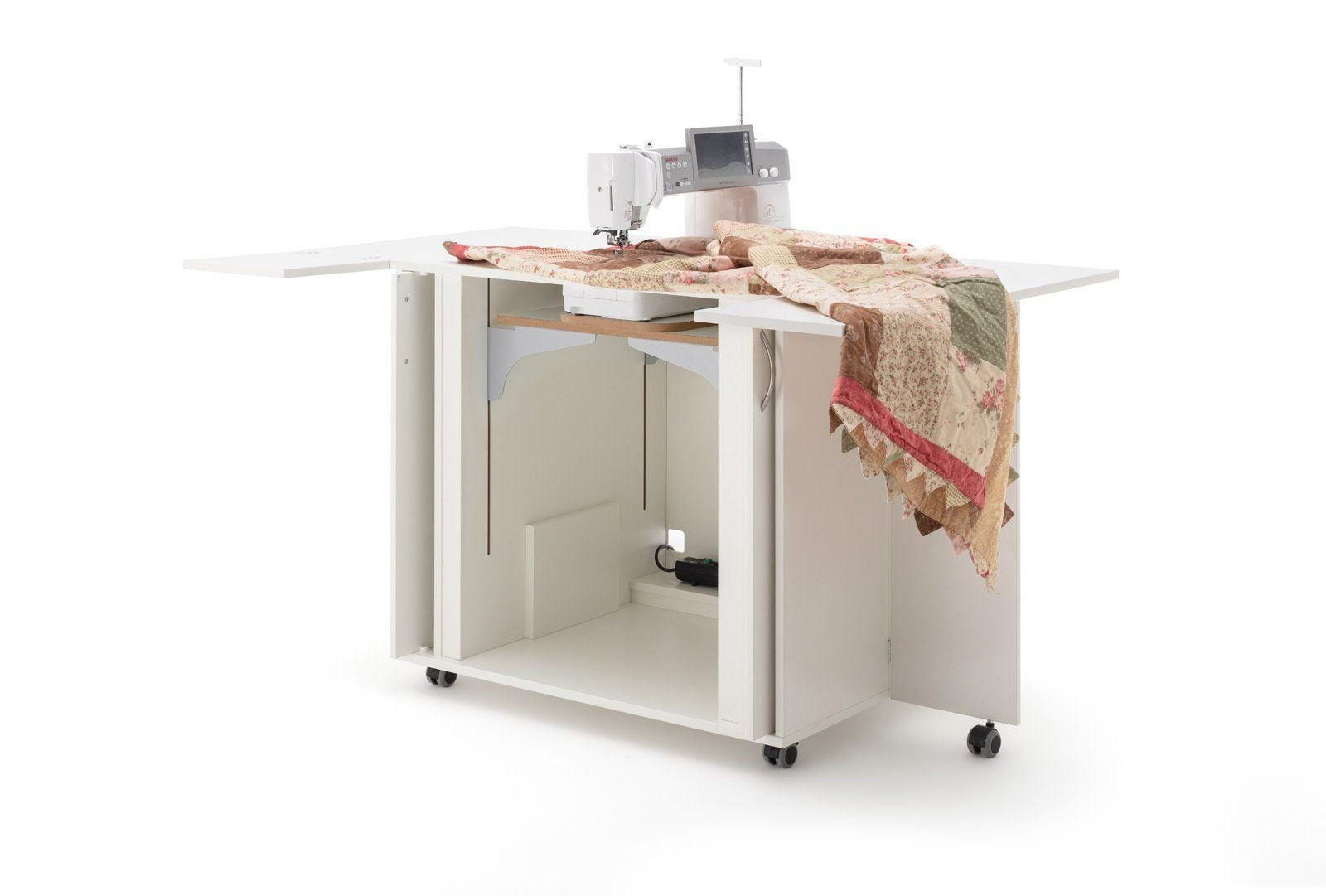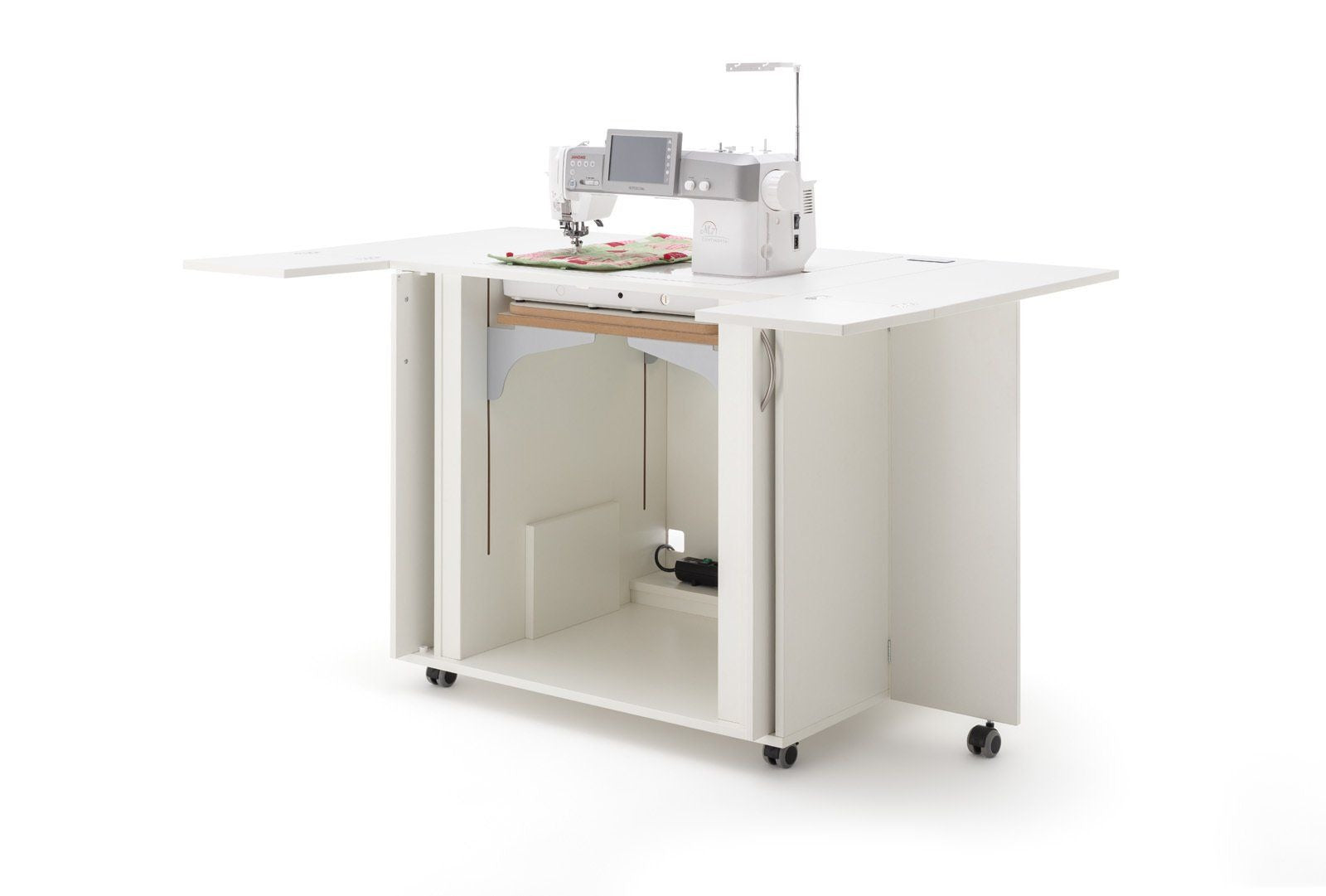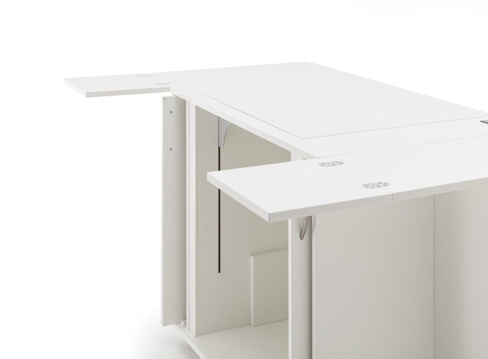 Die Weiterentwicklung zum TWIN fix mit den Kapp-, und Faltplatten. Unsere Revolution zum Nähen und Quilten in 90° auf einem Level, mit dem von uns entwickelten Schiebe-, und Drehmechanismus. Die Maschine kann auf dem Liftbrett um 90 Grad zwangsgeführt verdreht werden kann. Somit ist ein Quilten wie mit einer Longarm-Quiltmaschine möglich. Die für Ihre Maschine passende Freiarmeinlage ob quer oder in 90° gedreht bieten wir für alle Haushalt-Nähmaschinen an. Egal ob Sie Freiarm Nähen, Sticken, oder Ihre Maschine komplett versenken wollen, die beiden gekoppelten elektronisch gesteuerte RMF – easy-Softtech Lift bewegen jedes Maschinengewicht mühelos und bieten absolute Stabilität in jeder Lage. Das in der Platte eingelassene i-Touch Bedienfeld mit Lock-, zwei Momoryfunktionen und einer auf und ab Funktion runden die Bedienung ab. Durch den neuen großen RMF – Simply-7 Ausschnitt ist der Nähtisch kompatibel für alle Haushalt-Nämaschinen. Die auf eine 1600 x 1060 mm erweiterbare Arbeitsfläche bietet Platz für jede Quiltgröße. Beide Einschiebetüren verschwinden fast unsichtbar in das Innere des Möbels. Mit unserer Stuhlserie CHAIR one und CHAIR two sitzen Sie auch an diesem Möbel immer in der ergonomisch perfekten Höhe und Haltung.