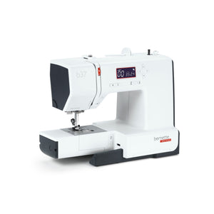 Die bernette 37 ist das kleinere der beiden Computermodelle. 50 Stiche stehen bei einer maximalen Stichbreite von 7mm zur Verfügung, darunter Deko und Stretchstiche sowie Knopflöcher. Die Nähgeschwindigkeit lässt sich nach bedarf individuell anpassen, und dank des hellen LED-Lichts ist die Arbeitsfläche bestens ausgeleuchtet.