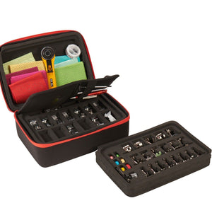 Der Zubehörkoffer ist leicht, stabil, dient als idealer Aufbewahrungsplatz und schützt das Zubehör zuverlässig während des Transports. Das Innenleben besteht aus drei herausnehmbaren Einlagen. Der Zubehörkoffer ist geteilt durch eine Trennwand mit Innentaschen für kleinteiliges Zubehör.
