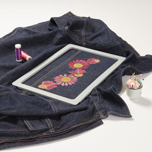 Der Magnet- Stickrahmen ist der starke Helfer, wenn es beim Sticken knifflig wird. Insbesondere bei Stickprojekten mit empfindlichen Stoffen, wie Samt, Leder oder Vinyl, ist der Magnet- Stickrahmen die geeignete Wahl. Der Magnet- Stickrahmen hält den Stoff sicher in Position ohne unerwünschte Druckstellen zu hinterlassen. Ist ein Bereich fertig gestickt, kann der Stoff einfach und bequem umgespannt werden. Dank seiner einfachen Handhabung können auch unhandlichere Sache, wie Jacken, Mützen oder Shorts, bequem in den Magnet- Stickrahmen eingespannt werden.