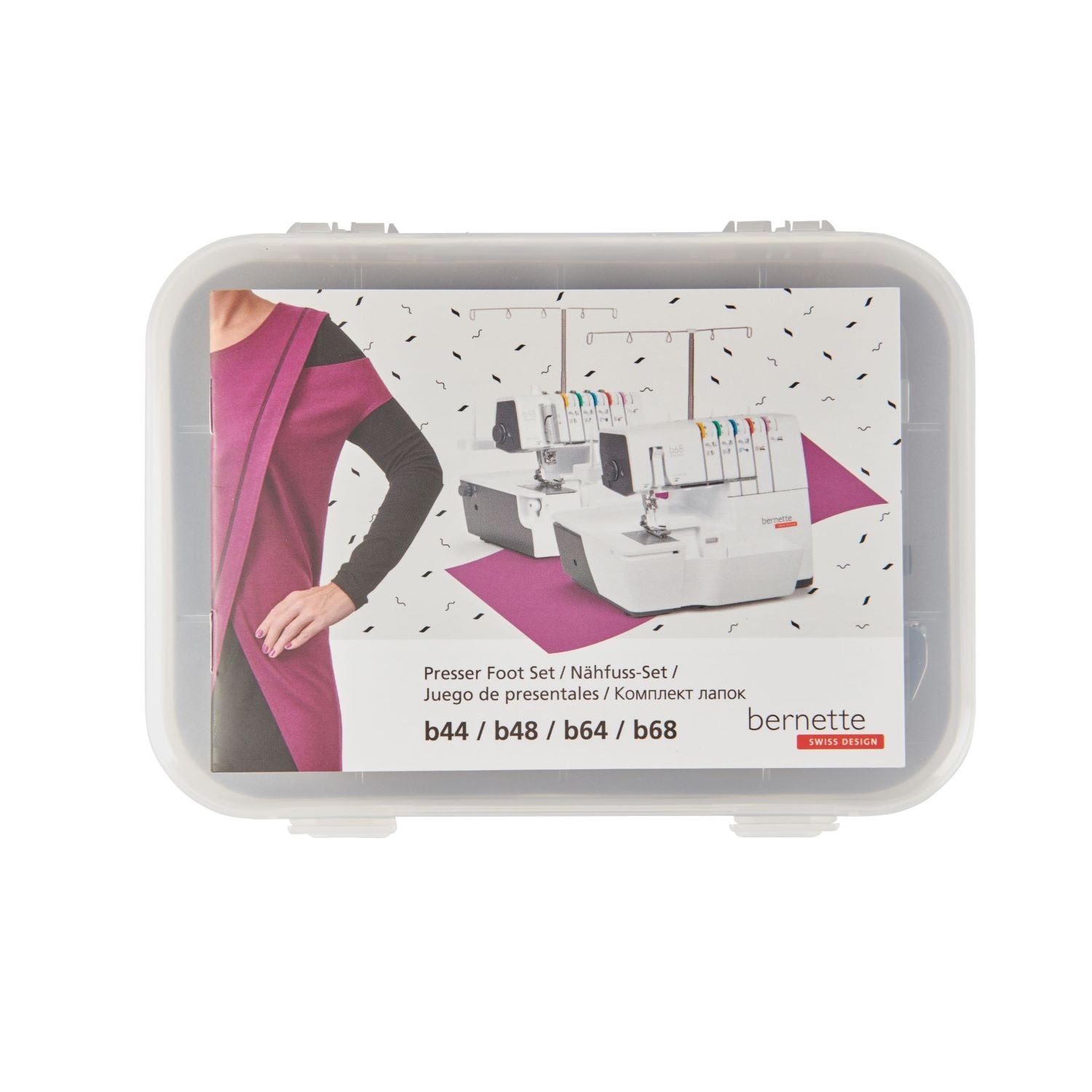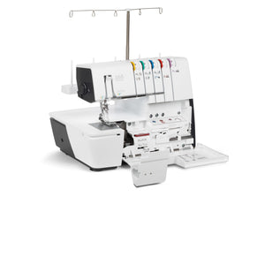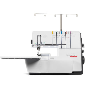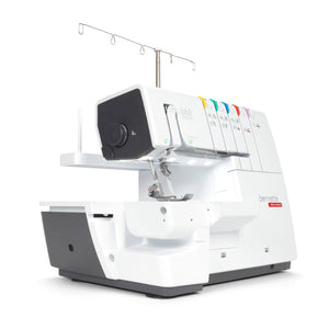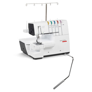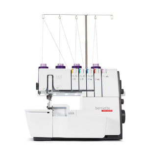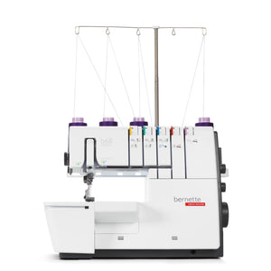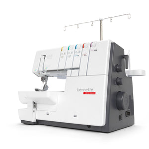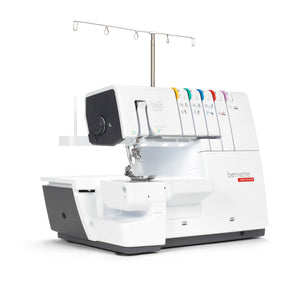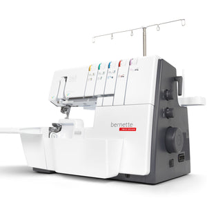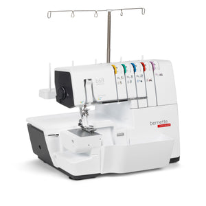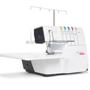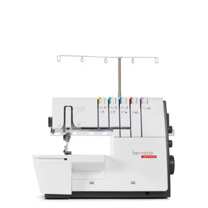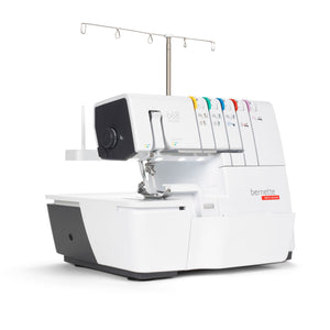 Das ist die bernette b68 AIRLOCK: Eine Combomaschine, mit der Sie Overlock-, Cover-, Ketten- und Kombistiche nähen können. Zu ihren Stärken zählen ein Lufteinfädler für einfaches Einfädeln der Greiferfäden, 130 mm Platz rechts der Nadel für komfortables Nähen grosser Projekte – besonders bei Coverstich-Anwendungen –, ein integrierter Freiarm zum Nähen von Bündchen. Total stehen 31 verschiedene Overlock-, Cover-, Ketten und Combostiche zur Verfügung.