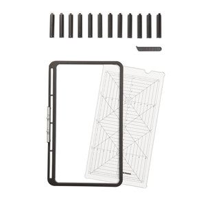 Verwenden Sie die frei positionierbaren Klammern, um Ihr Quiltprojekt leicht zu positionieren und einzuspannen. Zudem können Sie mit der dicken Acrylschablone die genaue Platzierung visualisieren und gleichzeitig für die richtige Spannung beim Einspannen sorgen.